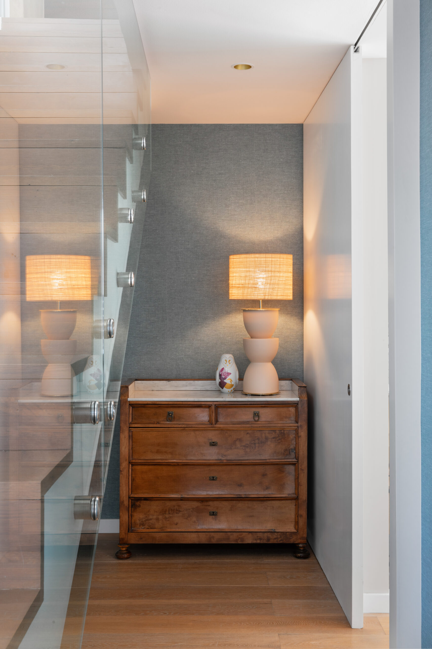 En los dormitorios, los textiles suaves y la luz tamizada por cortinas vaporosas crean ambientes envolventes y acogedores. Los baños, de líneas puras y materiales táctiles, completan el proyecto con una estética elegante y funcional.